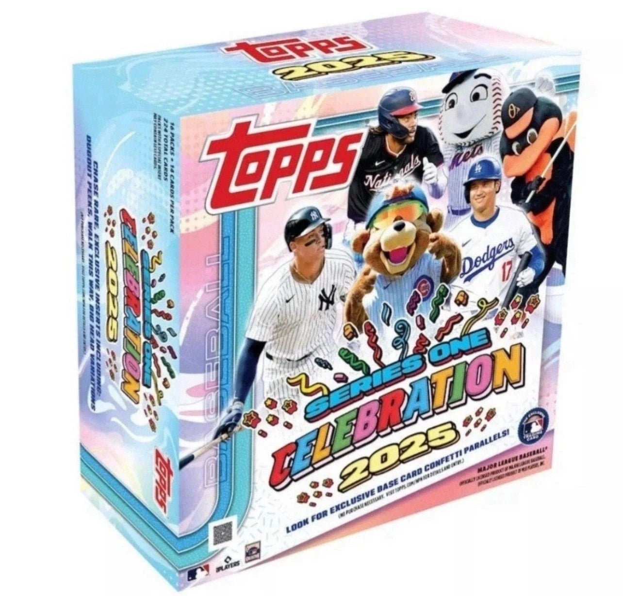 The 2025 Series One Topps Celebration Mega Box delivers an exceptional collection experience for serious baseball card enthusiasts. This premium set features a wide array of cards including rare inserts, autographs, and memorabilia, showcasing the brightest new talents and established stars. Each mega box guarantees multiple hit cards, enhancing value and excitement with every pack. Designed for collectors seeking depth and quality, this collection combines iconic Topps craftsmanship with the thrill of discovering limited-edition treasures. Ideal for both investment and personal enjoyment, the Celebration Mega Box remains a must-have for discerning hobbyists.